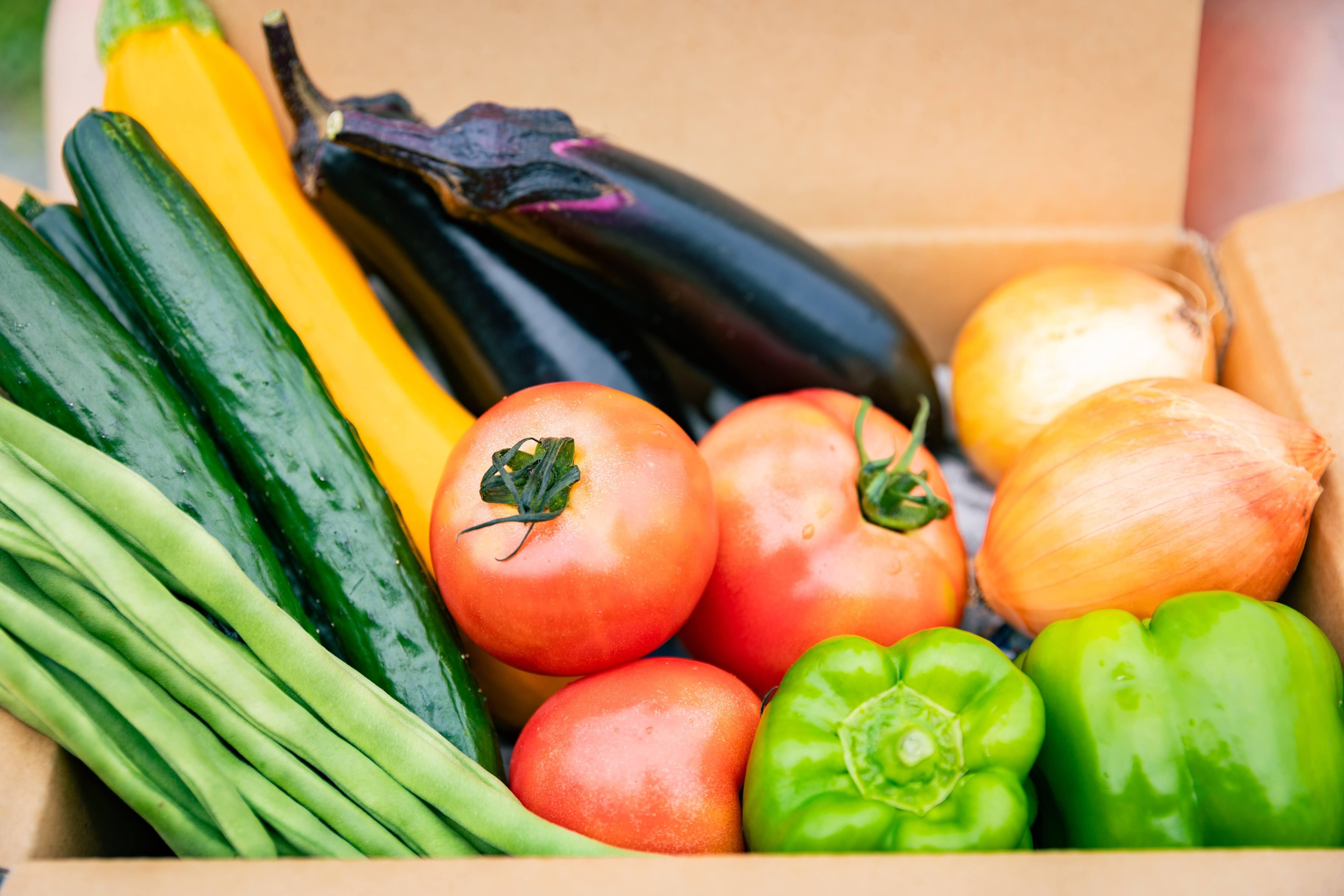 ナス、トマト、ピーマン、きゅうり、ピーマン、ズッキーニ、いんげんなど